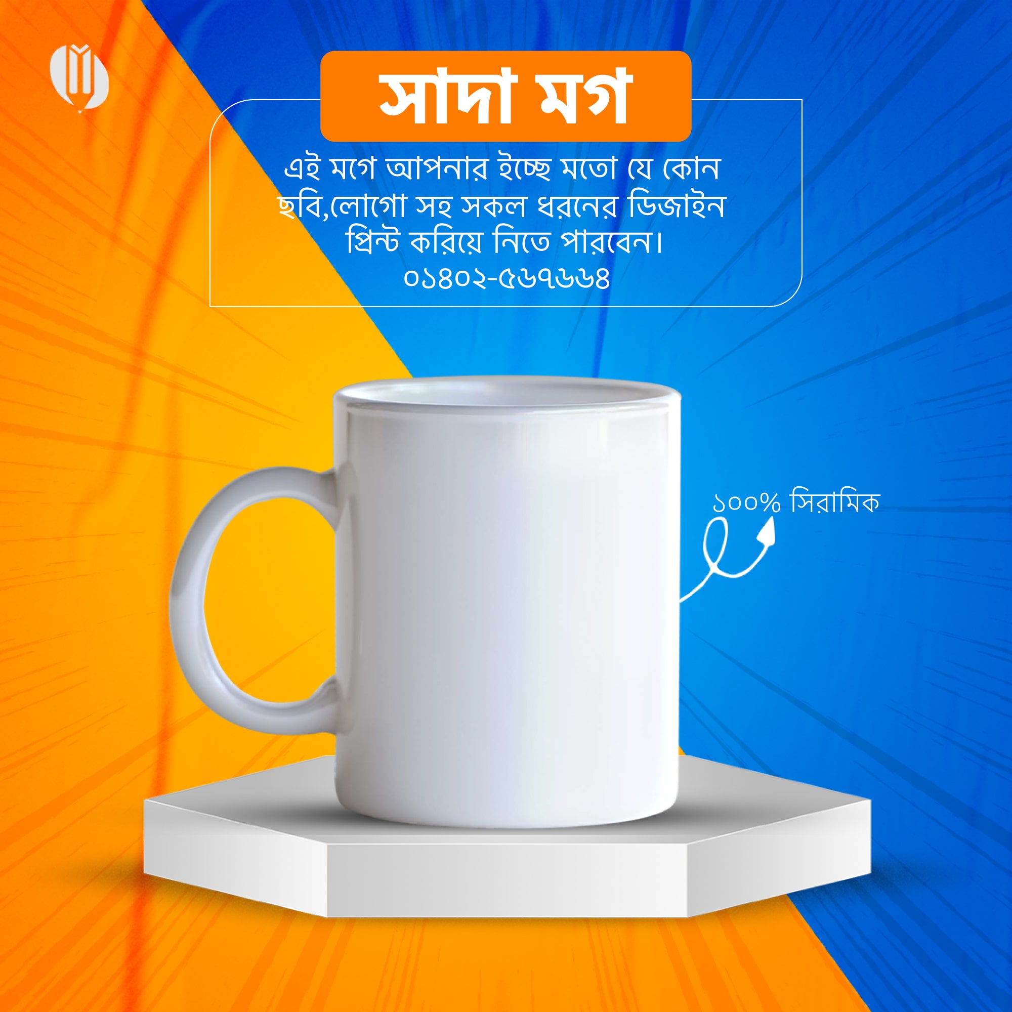 এই মগে আপনার ইচ্ছে মতো যে কোন ছবি,লোগো সহ সকল ধরনের ডিজাইন ও লিখা প্রিন্ট করিয়ে নিতে পারবেন।